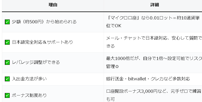 すなわち入金しなくてもこのボーナだけでリアルトレードを開始することができて、もちろんそこからの全利益は出金対象にはなるので、初回入金の必要なく取引を安心して始めることができます。なので一番最初にトレードをするならもってこいのシステムだと思います。それと口座開設ボーナスは全ての口座タイプが対象です。